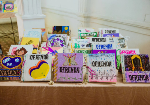 Ofrenda reúne testimonios de madres que han perdido a sus hijas, víctimas de feminicidio en nuestro país. De esta manera, esta presentación apuesta por dos ejes priorizados desde el trabajo de la sostenibilidad social: memoria y género. Los libros cartoneros, producidos, mantenidos y gestionados desde las propias personas protagonistas, se presentan como un instrumento de incidencia política para visibilizar historias que suelen quedar en el olvido y que, en muchos casos, no logran alcanzar justicia. Al mismo tiempo, se prioriza el abordaje de la salud mental, reconociendo el valor de las artes expresivas como recursos para acompañar los procesos de duelo y de tránsito del trauma de familiares de víctimas de feminicidio.